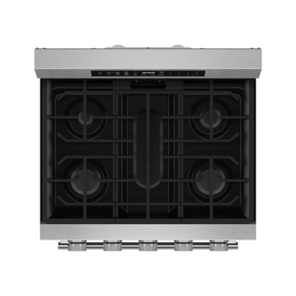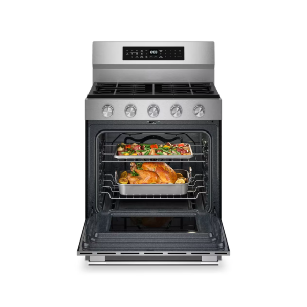Esta estufa a gas de 30 pulgadas ofrece un diseño funcional y elegante ideal para cocinas modernas. Incorpora cinco quemadores que brindan versatilidad para distintas preparaciones, desde cocción rápida hasta fuego lento. Su horno de gran capacidad permite cocinar múltiples platillos al mismo tiempo con resultados uniformes. Incluye tecnología de convección que optimiza la distribución del calor. Su acabado en acero inoxidable con PrintShield™ mantiene una apariencia limpia y sofisticada.