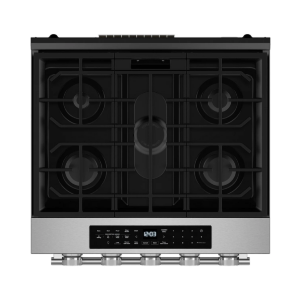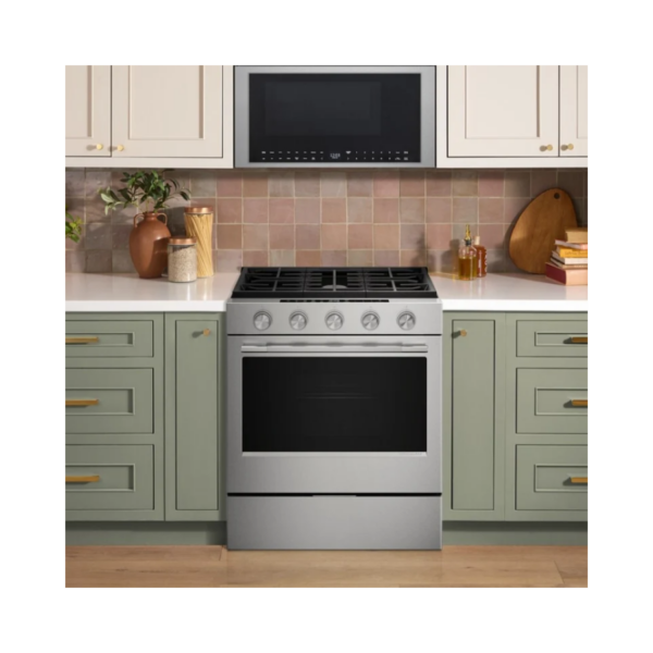 Esta estufa a gas de 30 pulgadas combina diseño elegante y alto rendimiento para una experiencia de cocción eficiente. Cuenta con cinco quemadores que ofrecen versatilidad para diferentes preparaciones, desde alta potencia hasta fuego bajo. Su horno incorpora tecnología de convección para una mejor distribución del calor, logrando resultados más uniformes. Su acabado en acero inoxidable con PrintShield™ mantiene una apariencia limpia y moderna, ideal para cualquier cocina.