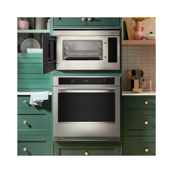 Este horno eléctrico empotrable de 30 pulgadas ofrece un equilibrio ideal entre tecnología avanzada y diseño sofisticado. Incorpora función Air Fry para lograr alimentos crujientes con menos aceite, perfecta para una cocina más saludable. Su sistema de convección asegura una distribución uniforme del calor para resultados consistentes. Cuenta con una amplia capacidad interior que permite preparar varios platillos al mismo tiempo. Su acabado en acero inoxidable con PrintShield™ mantiene una apariencia limpia y elegante.