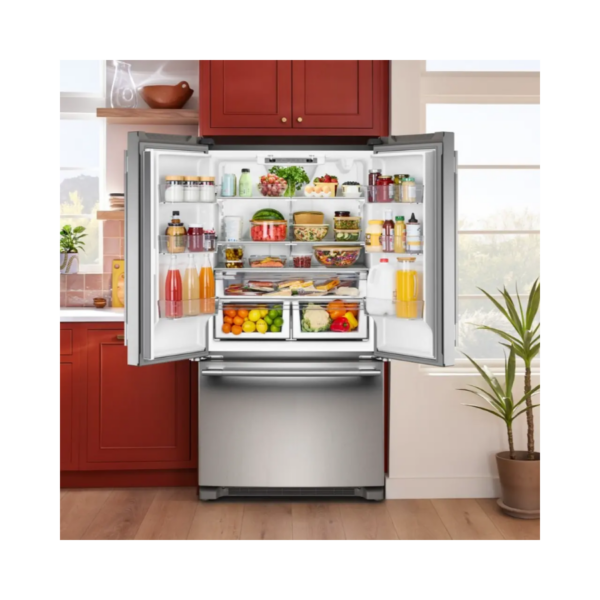 Este refrigerador French Door ofrece una gran capacidad y tecnología avanzada para mantener tus alimentos frescos por más tiempo. Su sistema especializado regula la temperatura de forma constante para conservar mejor sabor y textura. Integra dispensador interno de agua que mantiene un diseño exterior limpio y elegante. Sus amplios compartimentos permiten organizar fácilmente todo tipo de alimentos. El diseño de profundidad estándar brinda mayor espacio de almacenamiento sin comprometer funcionalidad. Su iluminación LED permite ver con claridad en todo el interior. Es ideal para quienes buscan alto desempeño, capacidad y estilo en su cocina.