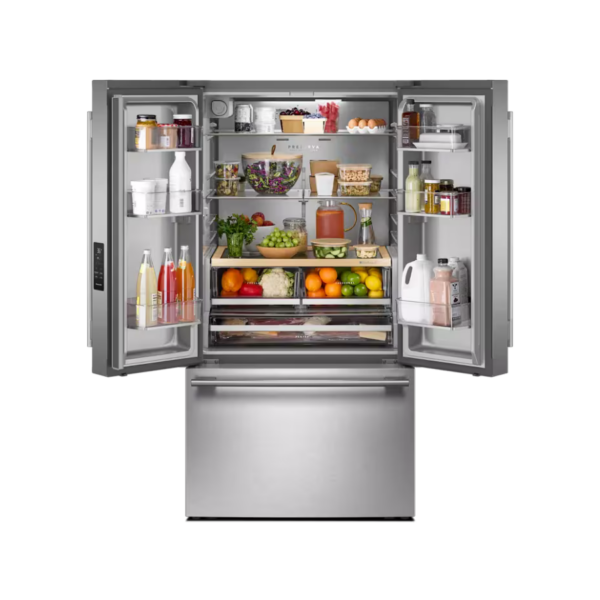 Este refrigerador French Door KitchenAid® está diseñado para quienes buscan máxima capacidad y organización inteligente en su cocina. Su amplio interior permite almacenar grandes cantidades de alimentos manteniendo todo visible y accesible. Integra tecnología avanzada que conserva la frescura por más tiempo, cuidando textura y sabor. El dispensador interno ofrece agua filtrada sin alterar el diseño exterior limpio y elegante. Sus acabados premium elevan el estilo de cualquier espacio. La iluminación interior resalta cada rincón para facilitar su uso diario. Ideal para hogares modernos que valoran rendimiento, diseño y practicidad.